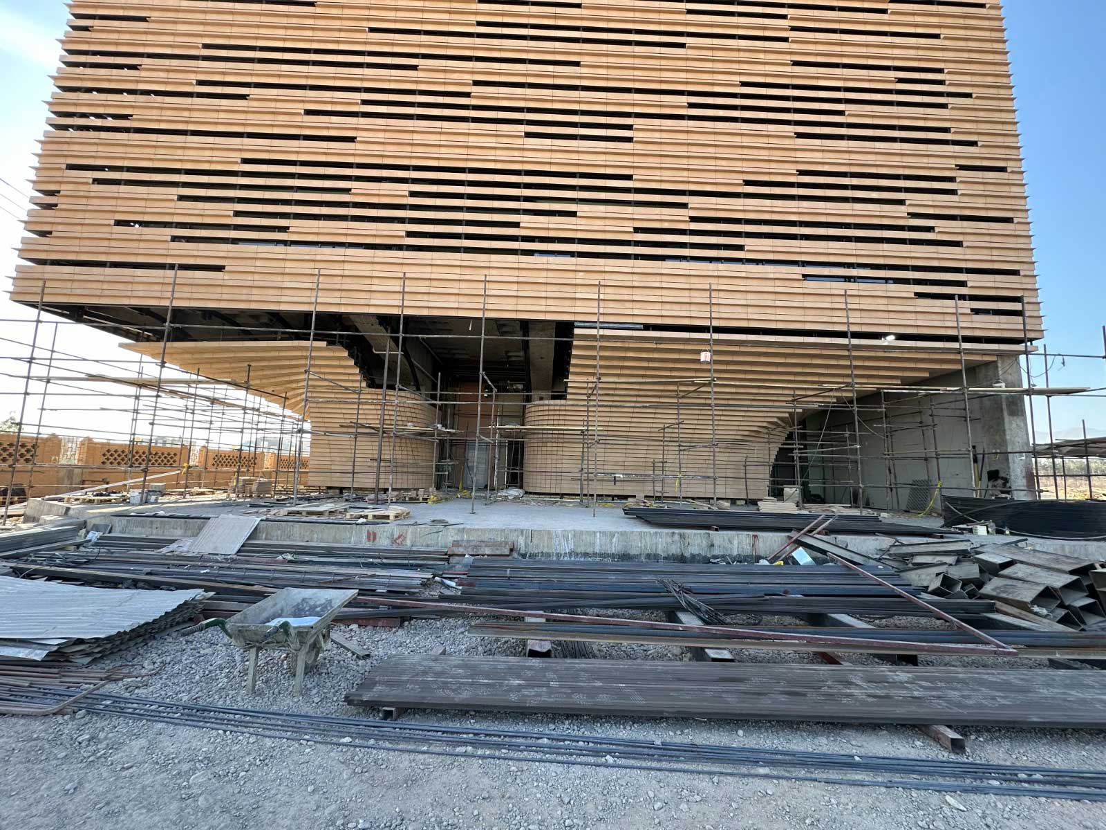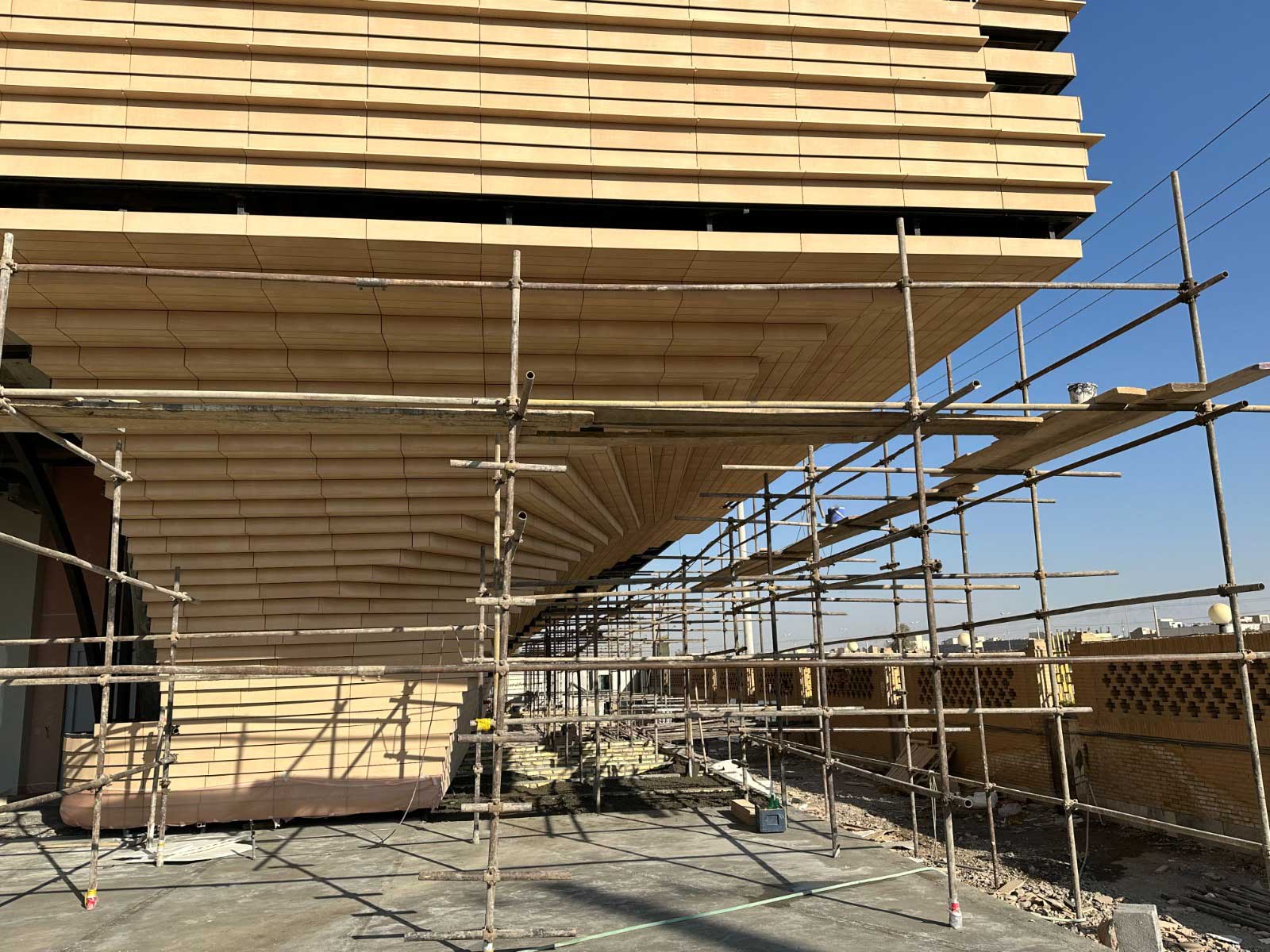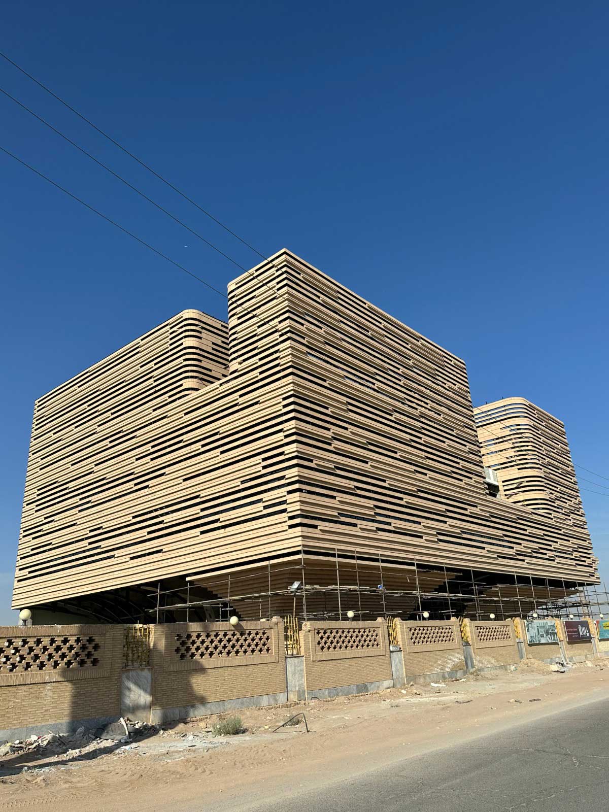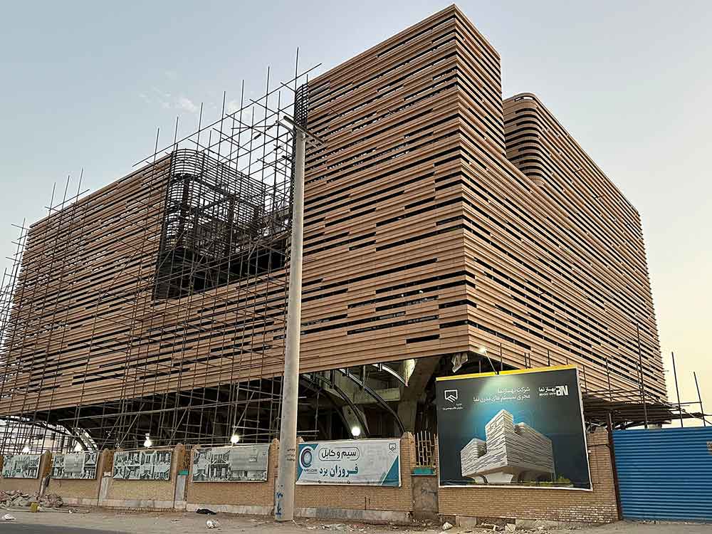برای ارتقای زیبایی بصری و انسجام کلی، آجرهای L شکل اختصاصی نیز طراحی و اجرا گردید تا فرم نهایی نما، یکنواخت، چشمنواز و هماهنگ با هویت معماری یزد جلوه کند.