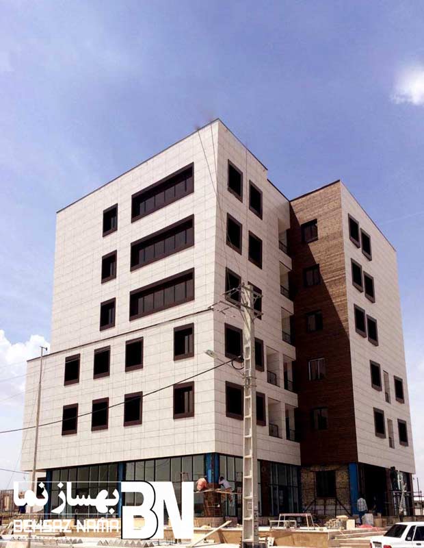 اجرای نمای ترکیبی به متراژ تقریبی 3800 متر مربع شامل 3000 متر مربع سرامیک به روش خشک و 800 متر مربع ورق کامپوزیت